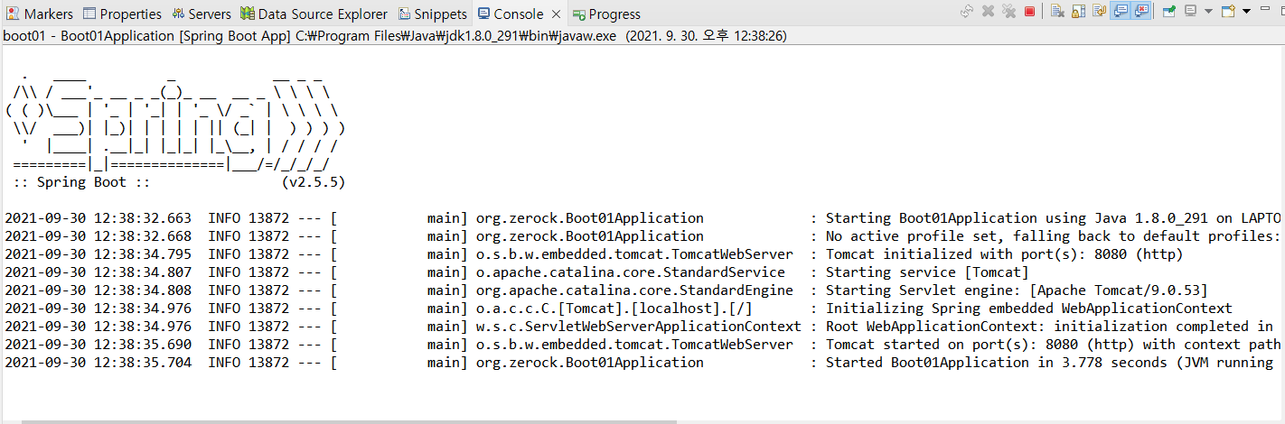 org.zerock.Boot01Application.java -> Run As -> Spring Boot App 클릭