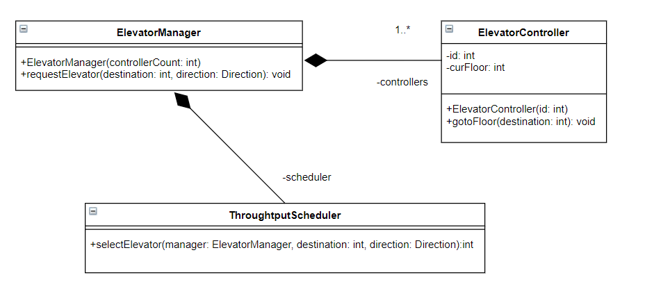 - 이동 요청을 처리하는 클래스로 엘리베이터를 스케줄링(엘리베이터 선택)하기 위한 ThroughputScheduler 객체를 갖는다.