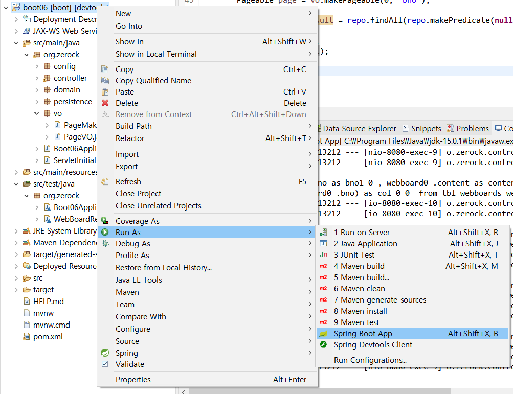 SpringBoot boot06 프로젝트에서 org.zerock.controller.WebBoardController.java 내용은 다음과 같았습니다.