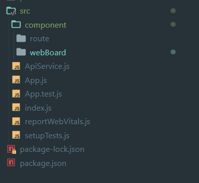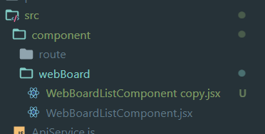 디렉터리를 아래 그림과 같이 생성합니다. src/component, src/component/route, src/component/webBoard 디렉터리 생성합니다.
