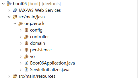 아래 그림과 같이 패키지(config, controller, domain, persistence, vo)를 생성합니다.