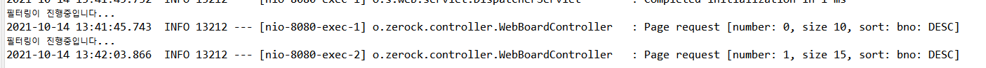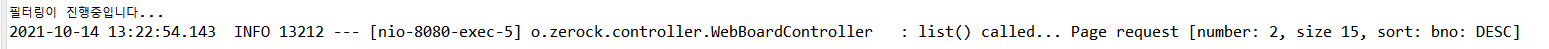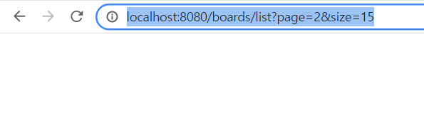 수정된 내용을 저장하고 프로젝트를 실행합니다.(http://localhost:8080/boards/list?page=2&size=15)