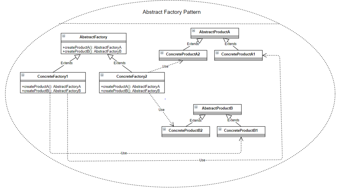 - ConcreteFactory : 구체적인 팩토리 클래스로 AbstractFactory 클래스의 추상 메서드를 오버라이드함으로써 구체적인 제품을 생성한다.