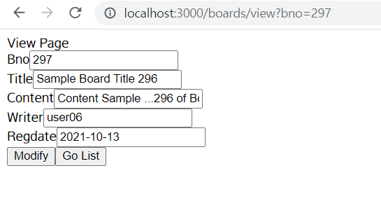 성공적으로 게시물의 정보를 출력할 수 있었습니다. 이상태에서 뒤로가기 버튼을 클릭하면 결과는 아래와 같습니다.