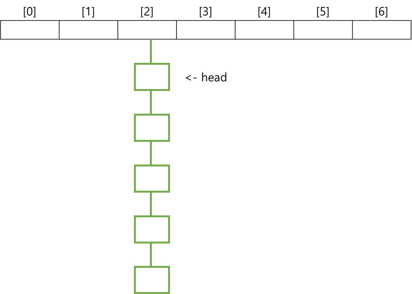 - 해시 값이 같은 숫자를 반환하여 하나의 체인이 너무 길어져 시간복잡도가 연결리스트와 같아지는 단점이 있을 수 있음