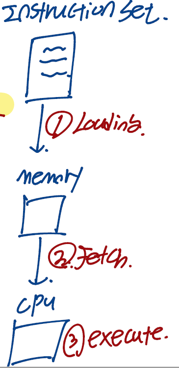 - 명령어 실행 사이클(Instruction-execution cycle)은 첫번째로 메모리에서 명령어를 인출(fetches)하고 명령어 레지스터(Instruction Register)에 명령어를 저장함