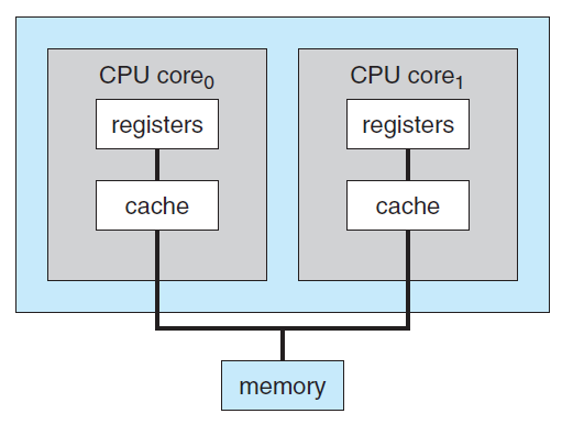 - 하나의 CPU 칩에 여러개의 코어를 통합하여 성능을 향상시키는 컴퓨터 구조