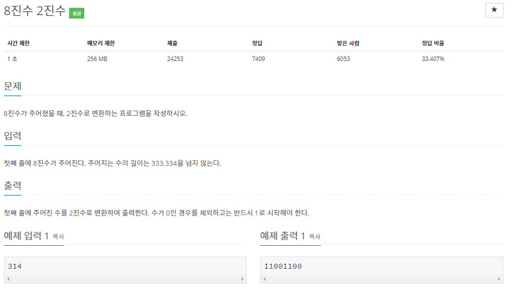 /* 8진수를 앞의 숫자부터 참조하여 2진수로 변경한다.*/