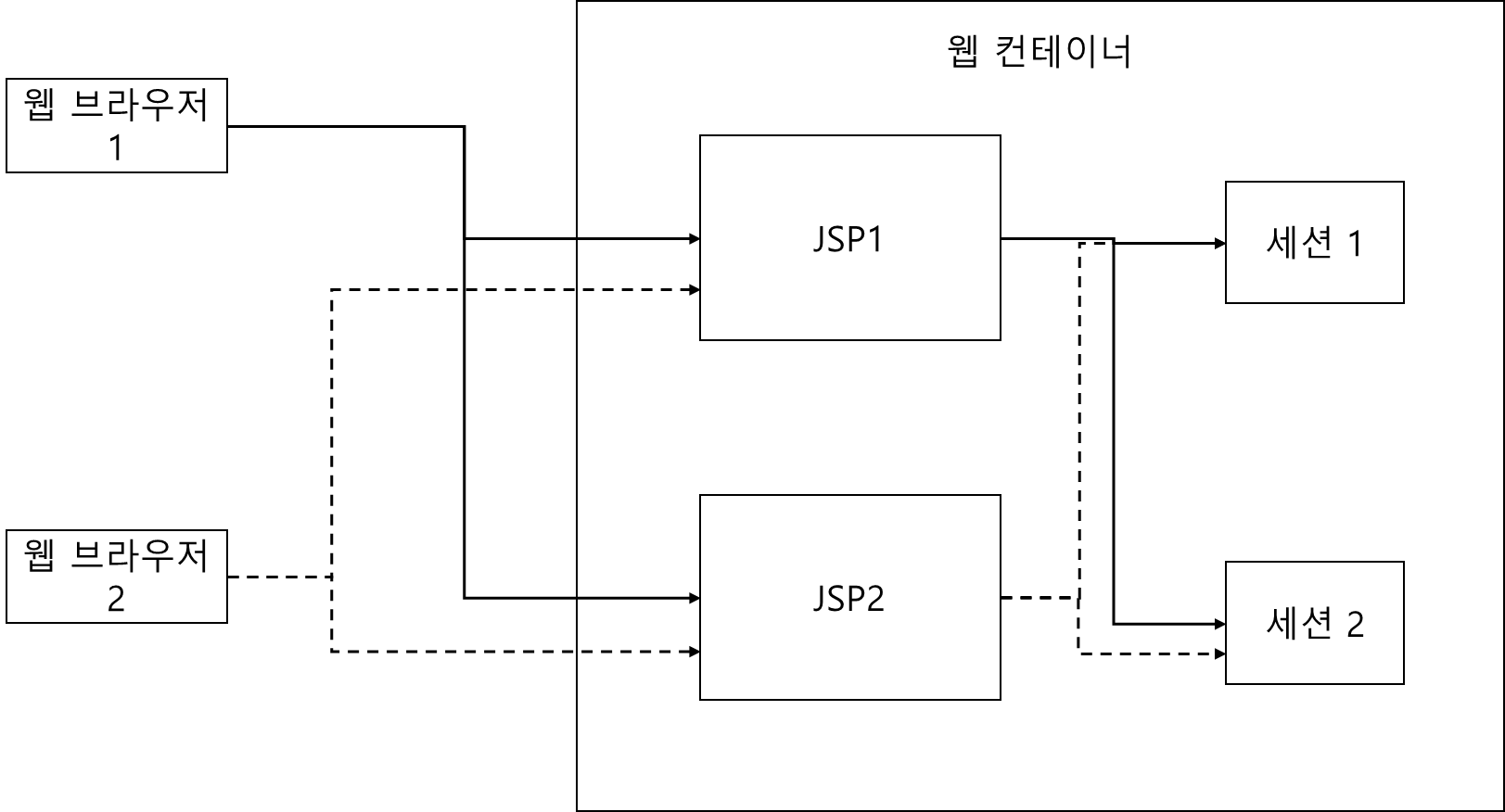 - 같은 JSP페이지라도 웹 브라우저에 따라서 서로 다른 세션을 사용함