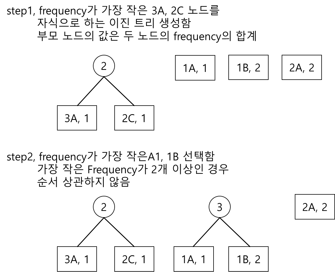 - 압축할 파일을 처음부터 끝까지 읽어서 파일을 구성하는 run들과 각 run들의 등장횟수를 계산함