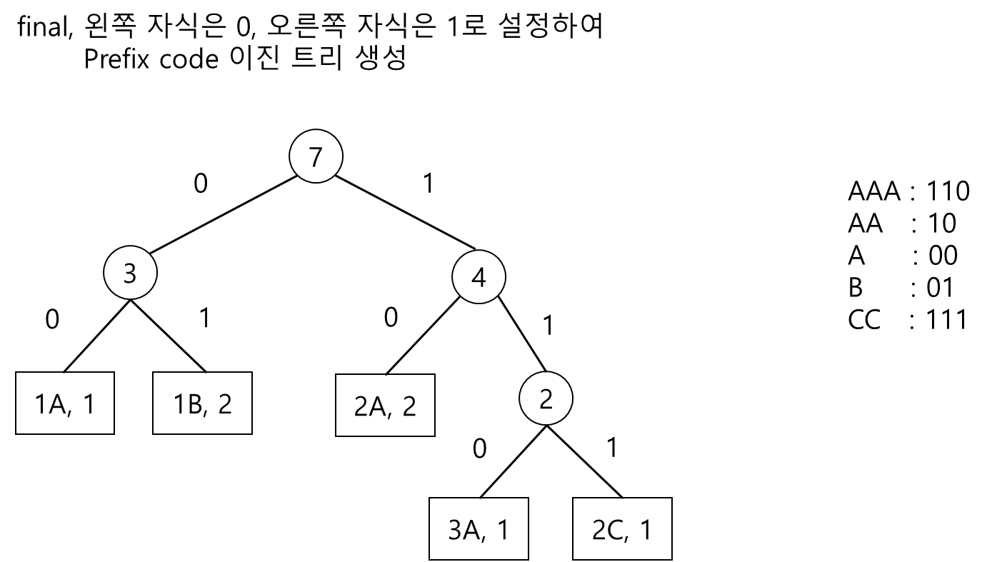 - AAABAACCAABA은 1100110111100100으로 인코딩됩니다.