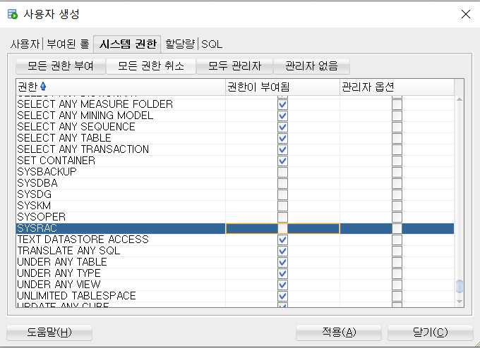 3.7 테이블 스페이스, 로그 스페이스, 사용자 생성 확인