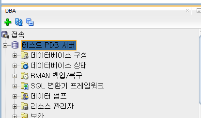 3.2 DBA 탭의 접속 추가 버튼 클릭 -> 테스트 PDB 서버 클릭 -> 확인