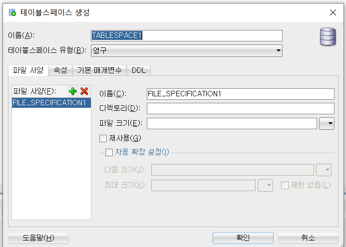 3.4 테이블 스페이스 정보 입력 -> 확인