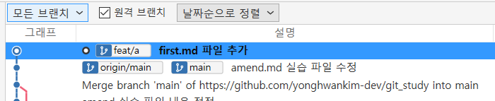 1.1 [main] 브랜치를 기반으로 [feat/a] 브랜치 생성
