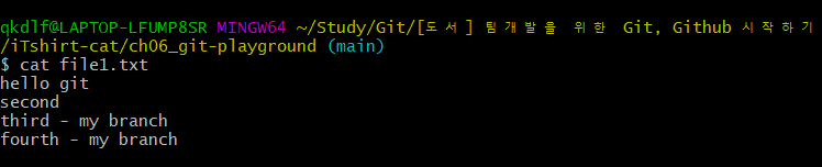 (main) ch06_git-playground $ cat file1.txt # 파일 내용 확인