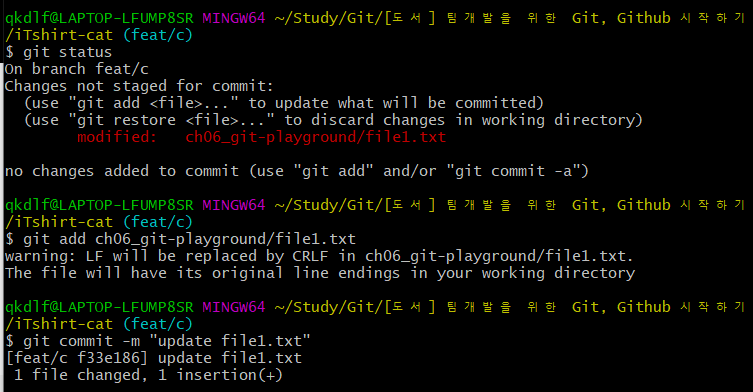 (feat/c) $ git add ch06_git-playground/file1.txt # 스테이지에 변경사항 추가