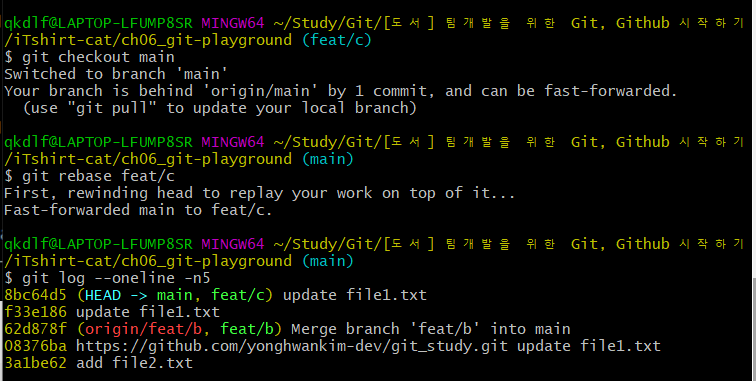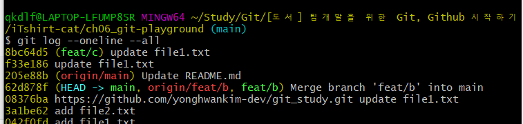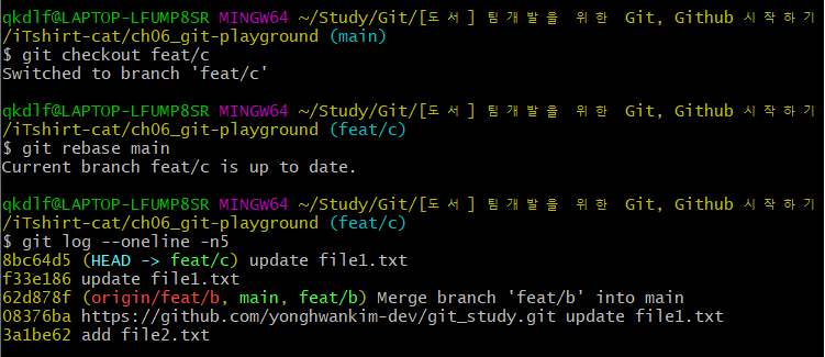 (feat/c) ch06_git-playground $ git commit -m "update file1.txt" # 신규 커밋 추가