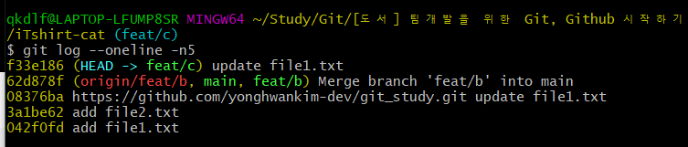 (feat/c) $ git log --oneline -n5 # 로그 확인, 변한게 없음