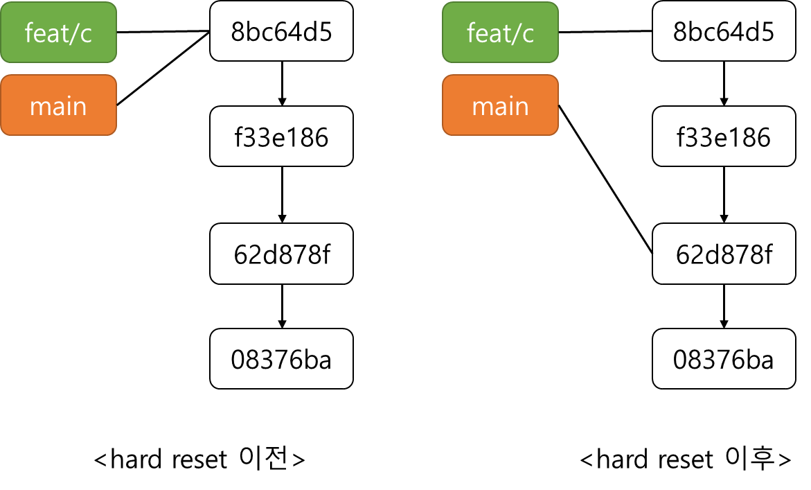 - 현재 브랜치를 지정한 커밋으로 이동시킴