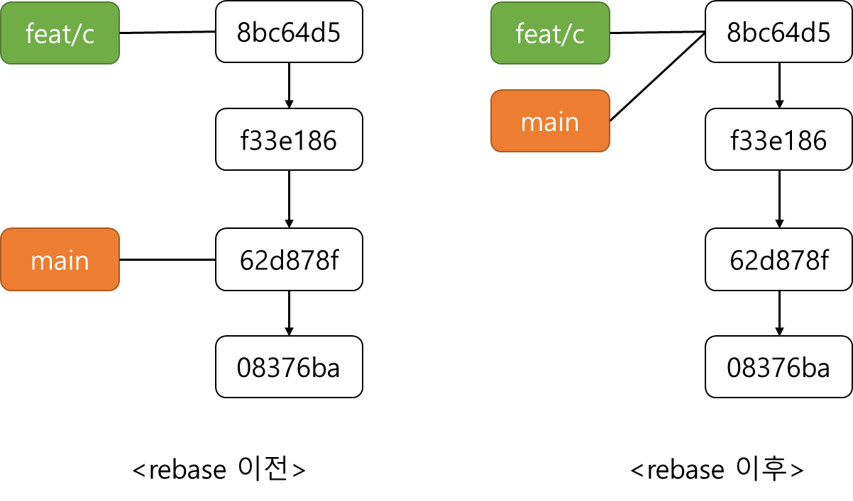 (main) $ git rebase feat/c # 반대 방향에서 rebase