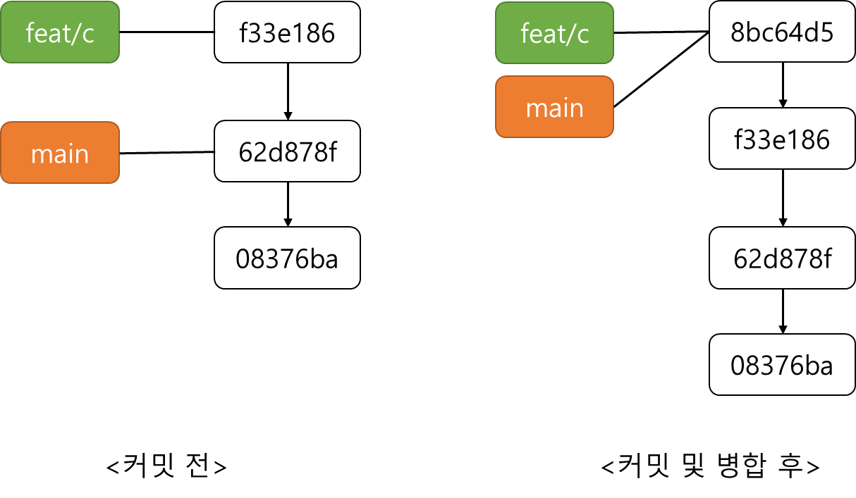 (feat/c) $ git checkout main # 다시 main 브랜치 이동