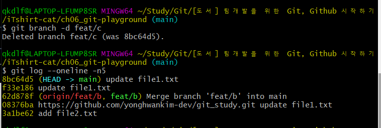 (main) $ git branch -d feat/c # 브랜치 삭제