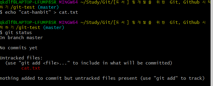 git-test $ echo "cat-hanbit" > cat.txt