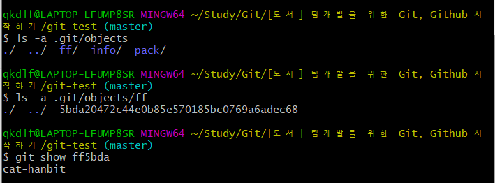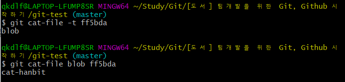 git-test $ git cat-file blob ff5bda # 해당 객체의 내용을 출력