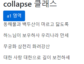 <button type="button" data-toggle="collapse" data-target="#a1">a1 영역</button>