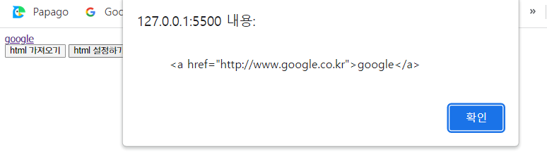 - a3 html 설정하기 버튼 클릭시 a 태그 html 코드가 들어가지만 문자열 형태로 삽입됨