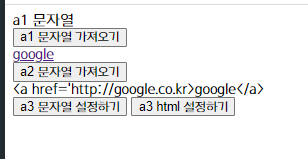 - a2 문자열 가져오기 버튼 클릭시 a 태그의 google 문자열만 가져옴
