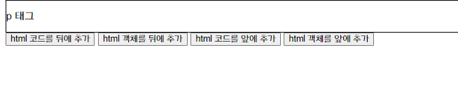 위 실행결과는 "html 코드를 뒤에 추가" 버튼을 누르고 "html 객체를 뒤에 추가" 버튼을 누른 결과입니다.