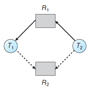 - 예를 들어 시스템에 R1, R2 자원이 있다고 가정합니다.