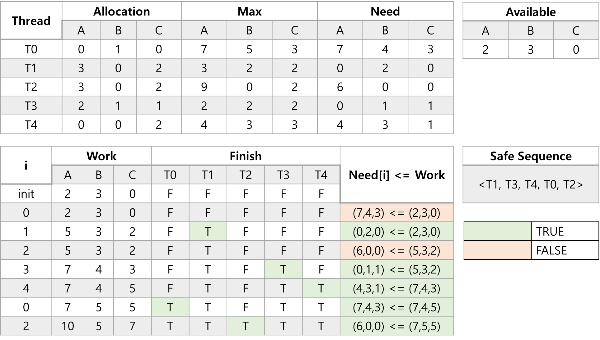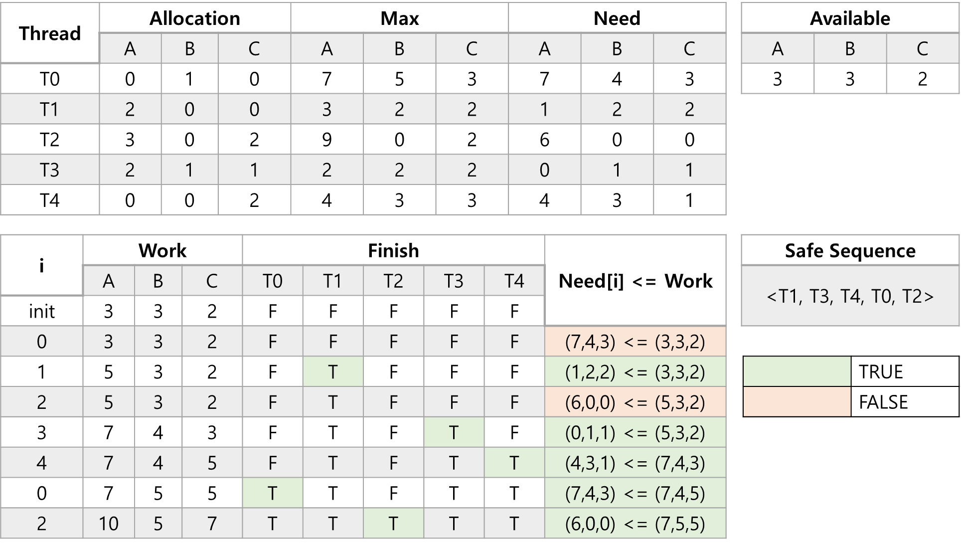 - Finish[i] = true : 쓰레드 Ti가 작업을 마쳤다는 것을 의미함
