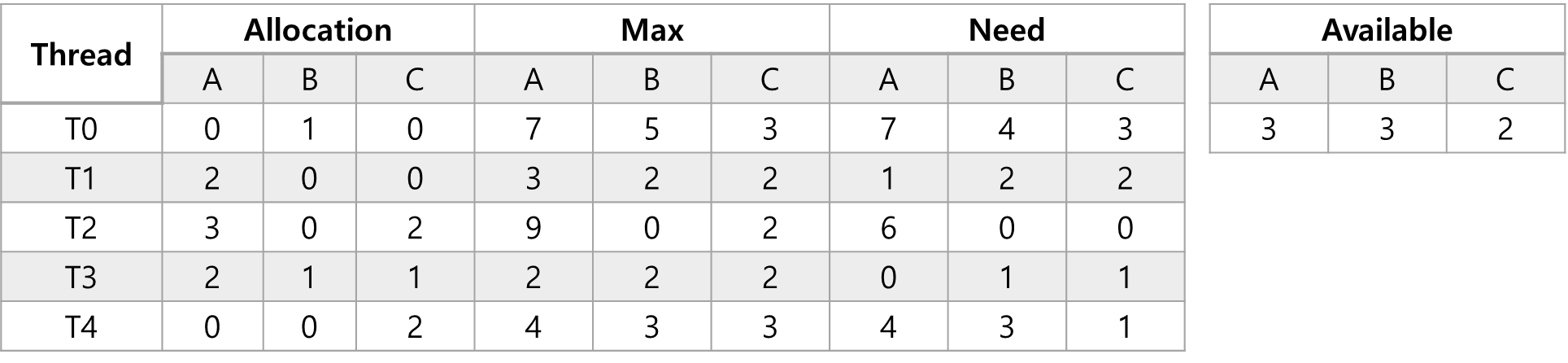 - 다른 쓰레드에 대해서 Need를 계산하면 다음과 같습니다.