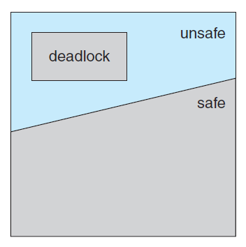 - 반대로 말하면 교착상태는 안전상태의 반대인 위험 상태(unsafe state)에만 존재합니다.
