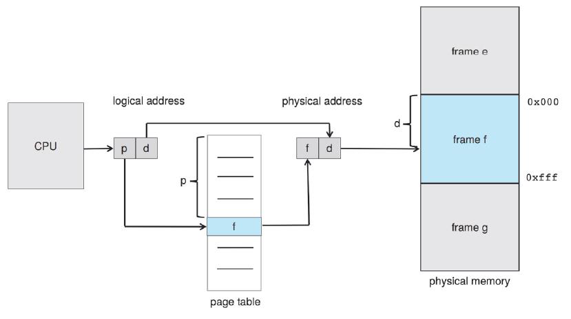 - 페이지 테이블로부터 페이지 번호 p에 따른 프레임 번호 f를 추출합니다.