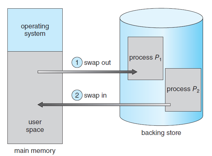 - Swap In : 프로세스 전체를 Backing Store에서 메인 메모리로 올리는 것