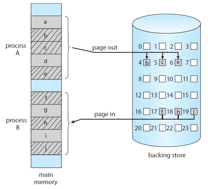 - page out : 하나의 페이지를 메모리에서 Backing Store로 내보냅니다.