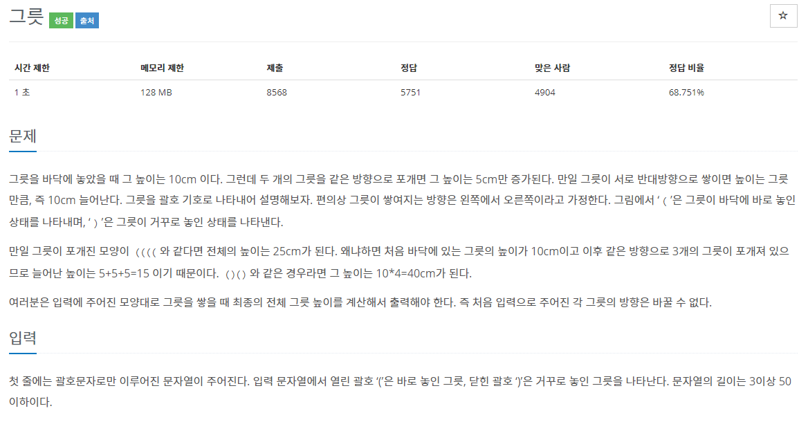 백준(Backjoon) 7567, 그릇