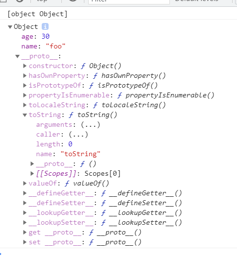 foo 객체를 보면 foo 객체의 프로토타입인 Object 객체의 메소드 중 toString 메서드가 존재하는 것을 볼 수 있다. 따라서 foo객체가 toString 메서드가 없어도 프로토타입이 존재하므로 toString 메서드를 사용할 수 있다.