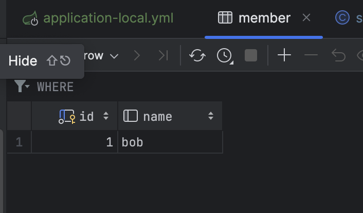 application-local.yml 파일에서 spring.jpa.hibernate.ddl-auto=create인 경우 서버를 재시작할때마다 테이블의 데이터가 제거됩니다. 이러한 경우 update로 변경하여 수행할 수 있습니다.