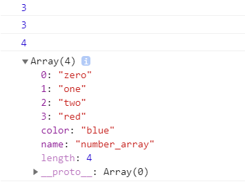 console.dir(arr); // {"0" : "Zero", "1" : "one", "2" : "two", "3" : "red",