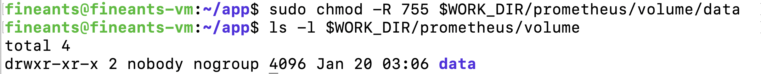 sudo chmod -R 755 $WORK_DIR/prometheus/volume/data