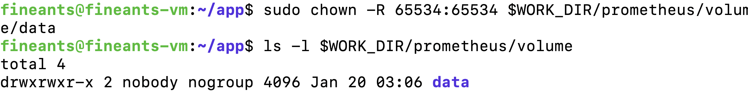 sudo chown -R 65534:65534 $WORK_DIR/prometheus/volume/data