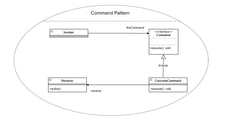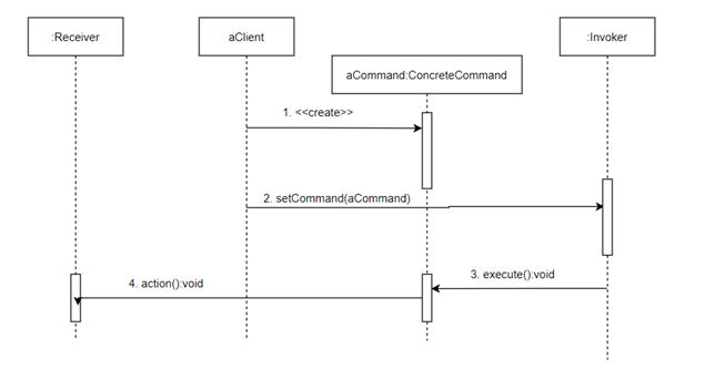 - Receiver : ConcreteCommand에서 execute 메서드를 구현할 때 필요한 클래스, 즉, ConcreteCommand의 기능을 실행하기 위해 사용하는 수신자 크래스